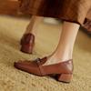 Casual square heel small leather shoes new fashion single shoes women's headgear and feet one pedal beef tendon sole large size medium heel fashion