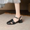 Novas sandálias de verão baotou com abertura no calcanhar sandálias casuais femininas de salto alto cor sólida sola de tendão de boi sapatos de tamanho grande fivela sapatos femininos