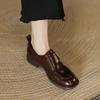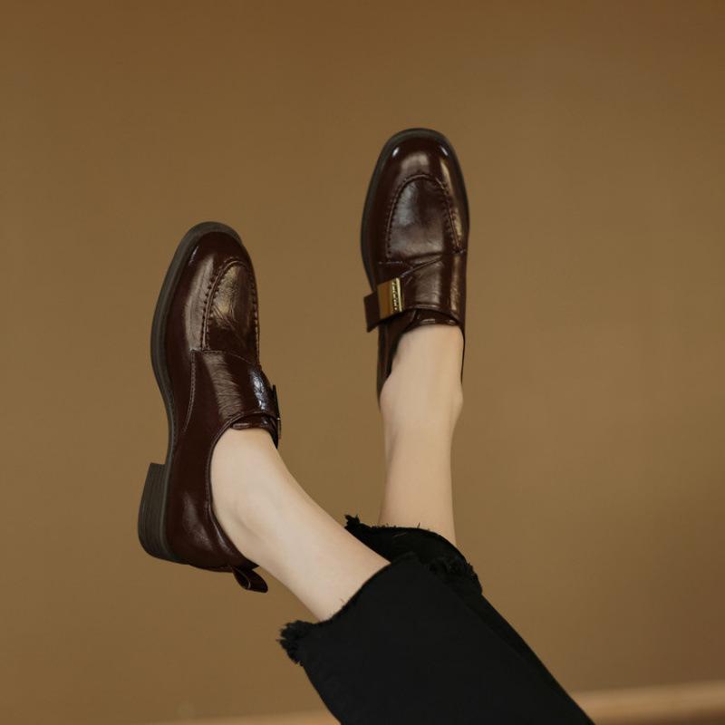 New four-season casual single shoes round head large size shoes rubber soft-soled leather shoes square heel flat shoes one pedal women's shoes