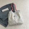 Korean ins floral canvas bag women's shoulder large capacity canvas bag thin plaid cradle bag portable canvas bag