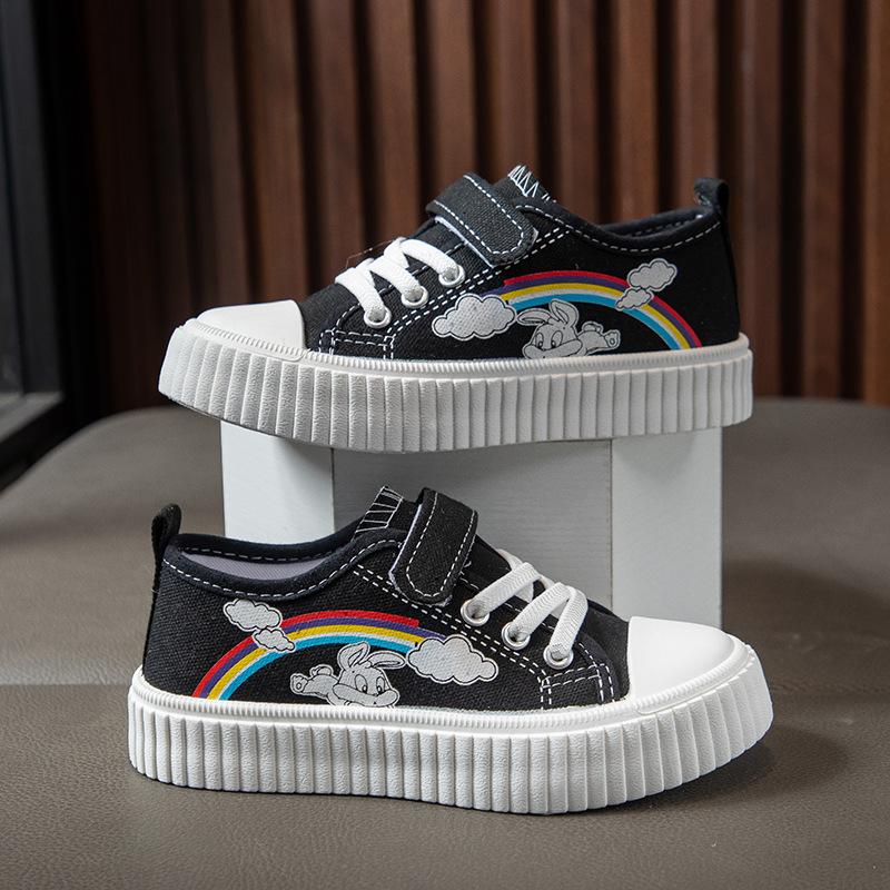 Girls canvas shoes breathable student white shoes 2025 autumn new children's casual shoes boys sports board shoes tide