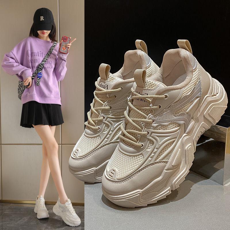 Dad Shoes Women's Spring and Autumn New Student Edition Platform Sneakers Single Shoes Breathable Versatile Height Increasing Casual Sneakers Women
