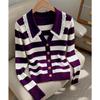 Women's Clothing Elegant Fashion lace Striped Knit Cardigan Autumn Winter New Sweet All-match V-neck Sweaters Lady Long Sleeve Tops