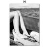 Black and White Wall Art Seascape Canvas Print Poster Beach Girl Surfboard Painting Landscape Tropical Palm Pictures Home Decor