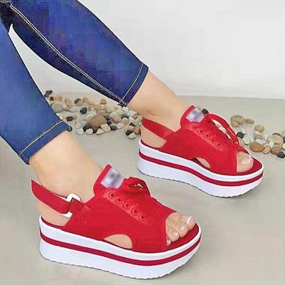 Sandálias femininas da moda, cor sólida, salto plataforma, calçados esportivos casuais