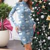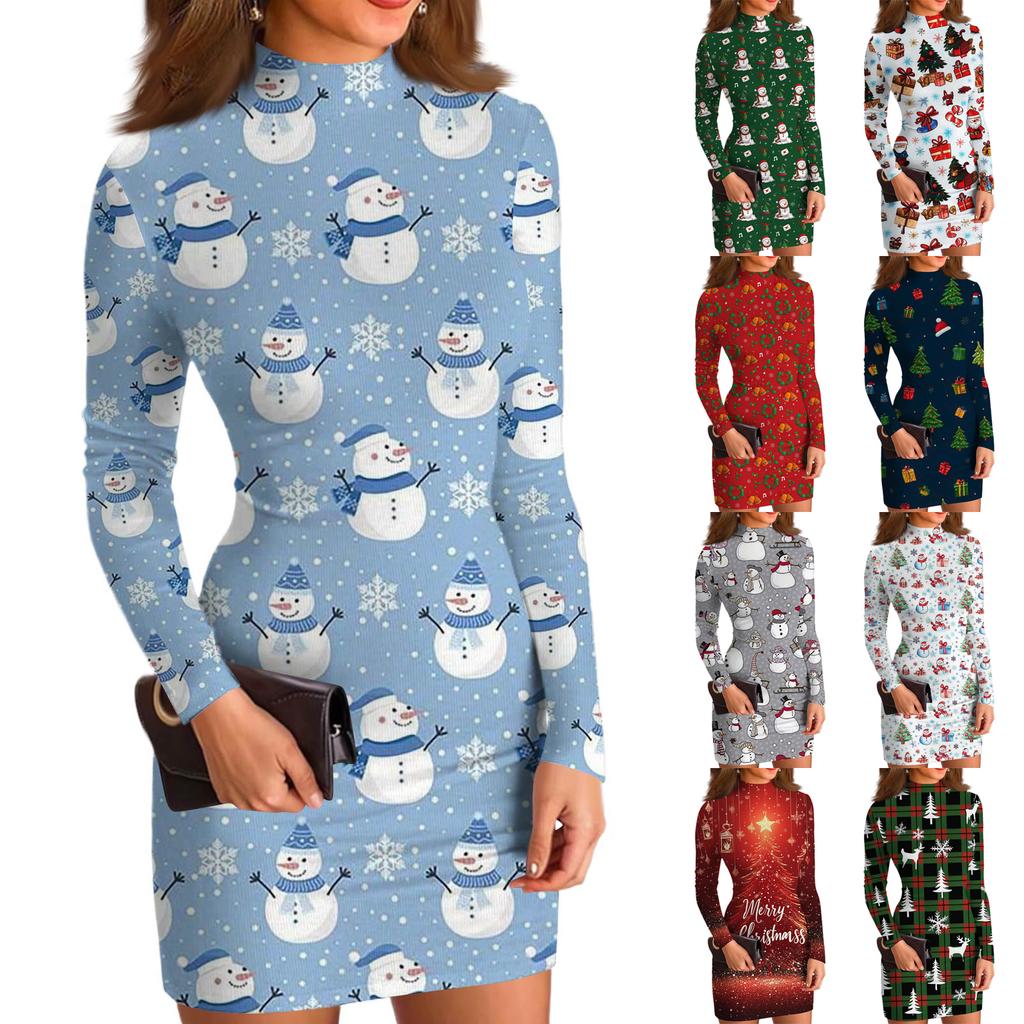 Women's High-Neck Casual Long-Sleeved Printed Slim-Fit Dress