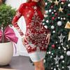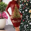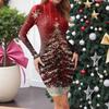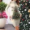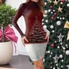 Women's High-Neck Casual Long-Sleeved Printed Slim-Fit Dress