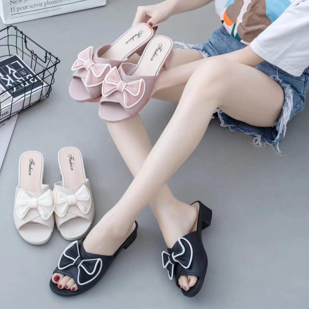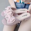 Chinelos de Salto Plataforma com Laço Estilo Coreano: Sandálias de Moda Femininas de Verão com Solado Grosso Antiderrapante