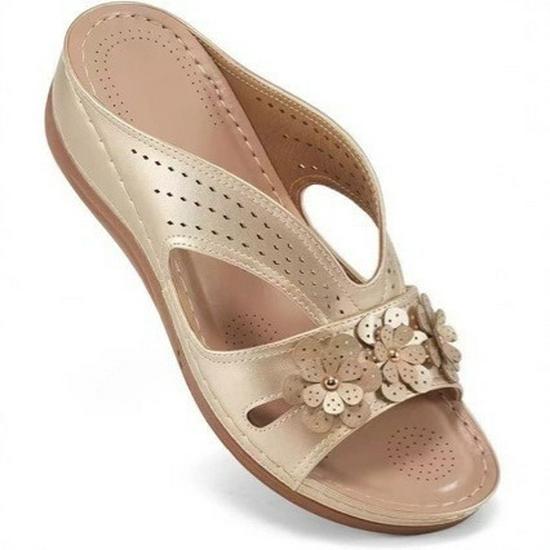 European & American Retro Floral Wedge Heel Plus Size Sandals & Slippers - 2025 Casual Beach One-Strap Design