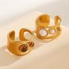 Stylish and simple tiger's eye stone opening adjustable ring retro temperament stainless steel gold-plated jewelry ring versatile woman