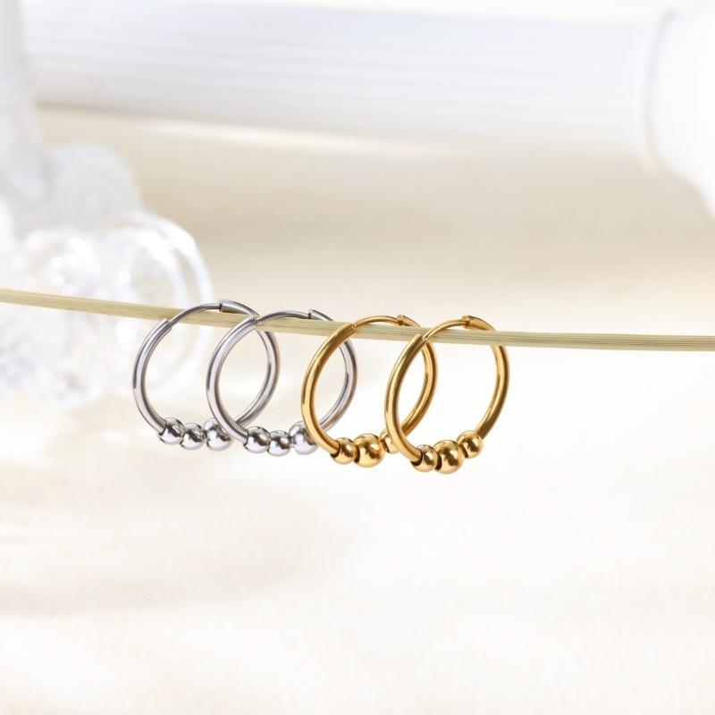 Premium Simplicity Titanium Steel Bead Earrings Women's Gold Earrings Gold Rotatable Bead Earrings