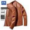 ROMON Men's Genuine Leather Stand-Collar Jacket