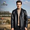 Futhing Men's Genuine Sheepskin Lapel Leather Jacket