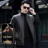 Futing Men's Business Windproof Genuine Sheepskin Leather Jacket