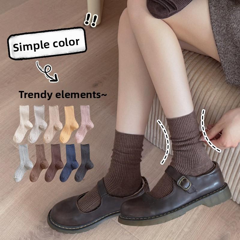 Women's Mid-calf Socks, Spring and Autumn Cotton Socks, Long Socks, Solid Color, Versatile Autumn Boneless Pile Socks