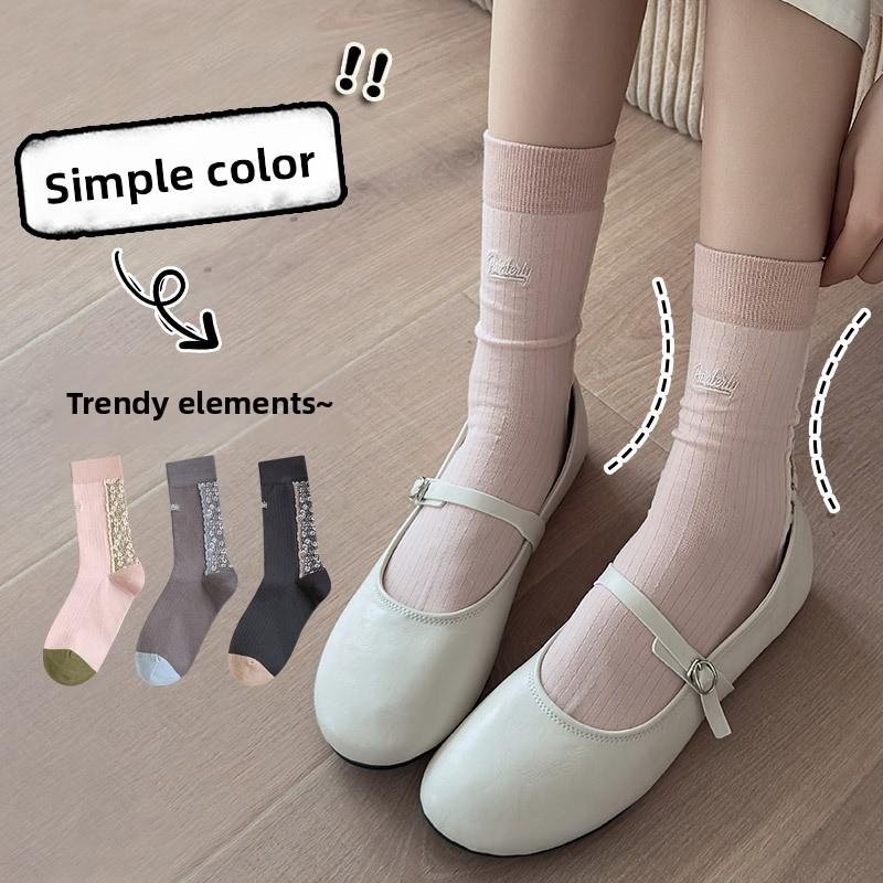 Women's Autumn and Winter Retro Checkered Piled-up Socks, Cotton Socks, Mid-calf Socks, Single-shoe Women's Socks