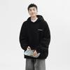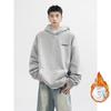 Suéter com Capuz de Letras Estampadas Masculino Solto Cinza Casual Casal Moletom Casaco no Outono e Inverno.