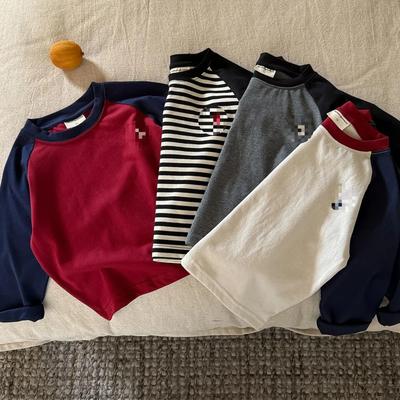 27kids 2024 Outono Camiseta de Manga Comprida para Meninos Estilo Coreano