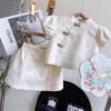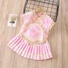 This stylish two-piece outfit is perfect for your little one's summer wardrobe. Crafted from soft corduroy material, the set features a sleeveless vest design that provides comfort and breathability on warm days. The charming cheongsam style adds a touch of elegance and tradition, making it an ideal choice for both casual outings and special occasions. Lightweight and easy to wear, this outfit ensures your baby girl looks adorable while staying comfortable all day long.