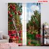 Conjunto de 2 cortinas com estampa 2D de maçã e chá, tecido 100% poliéster resistente. (sem vara) Decorações internas para uso em