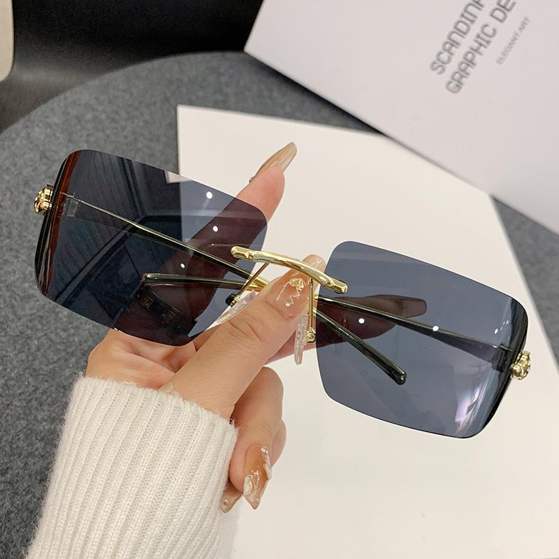 New Sunglasses With Special Frameless Cut Edge Metal Frame, Leopard Head Decorative Sunglasses For Men And Women 90283