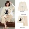 Women's Long Sleeve Cotton Pajama Set with Bra Pads - Sweet Cartoon, Plus Size, Antibacterial, Loose Fit