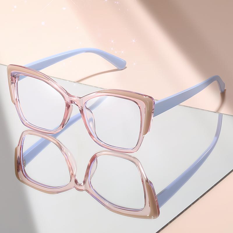 The retro cat-eye flat glasses with contrasting color design are both fashionable and versatile anti-blue light glasses