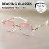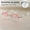 Elegantes Óculos de Leitura Sem Aro com Strass Brilhantes - Gradiente Rosa, Ajuste Confortável +1.0 A +4.0 Ampliação