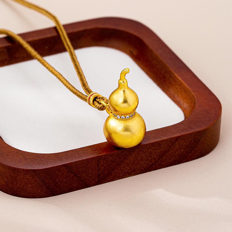 Retro Vietnamese Gold Gourd Necklace with Zircon Inlay - Versatile Pendant Chain for Men and Women