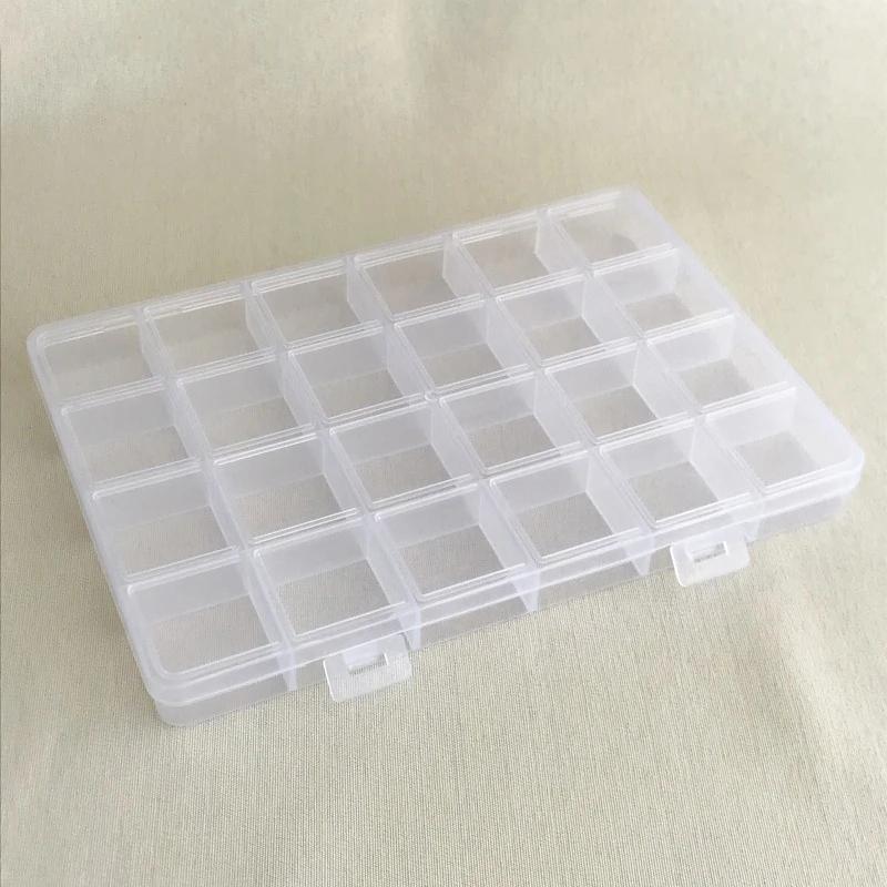 Organizador de Joias Portátil Caixa de Armazenamento - 12/24 Grelhas Ajustáveis Alta Capacidade Estojo de Plástico Transparente - Ferramenta de Armazenamento Transparente