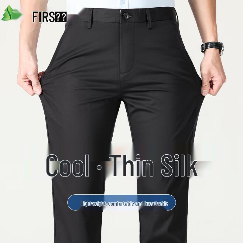 Shanshan Men's Lightweight Silk Blend Straight-Leg Business Casual Pants