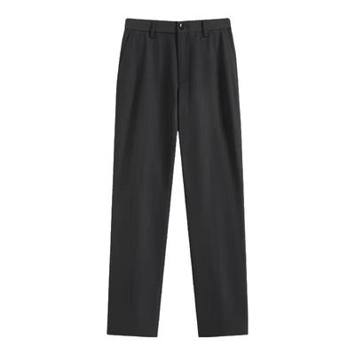 Calças de Fato Femininas de Cintura Alta Pretas de Perna Larga - Verão Finas, Slim e Casuais Profissionais