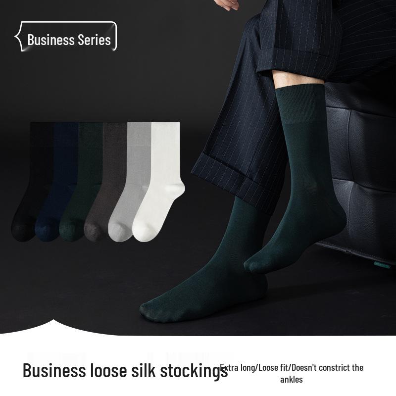 Men's Formal Black Silk Over-the-Calf Socks - Antibacterial, Four-Season Business Style