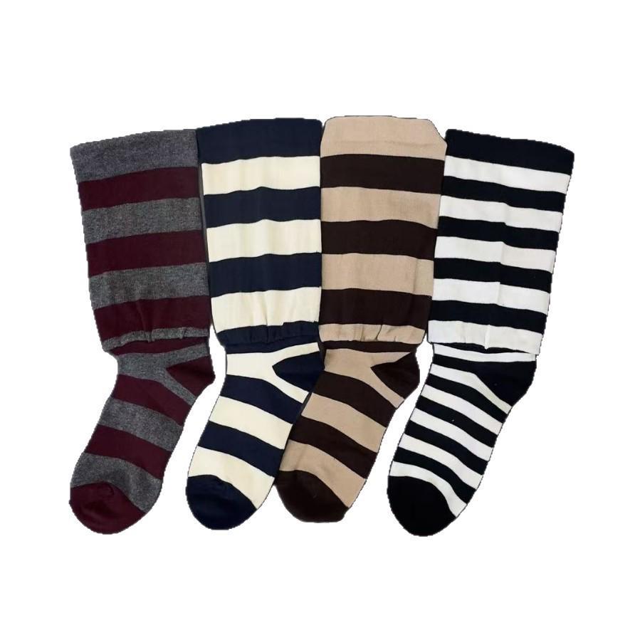 Korean-Style Cotton Mid-Calf Flared Striped Socks - Women's Fashionable Double-Layer Slouchy Design