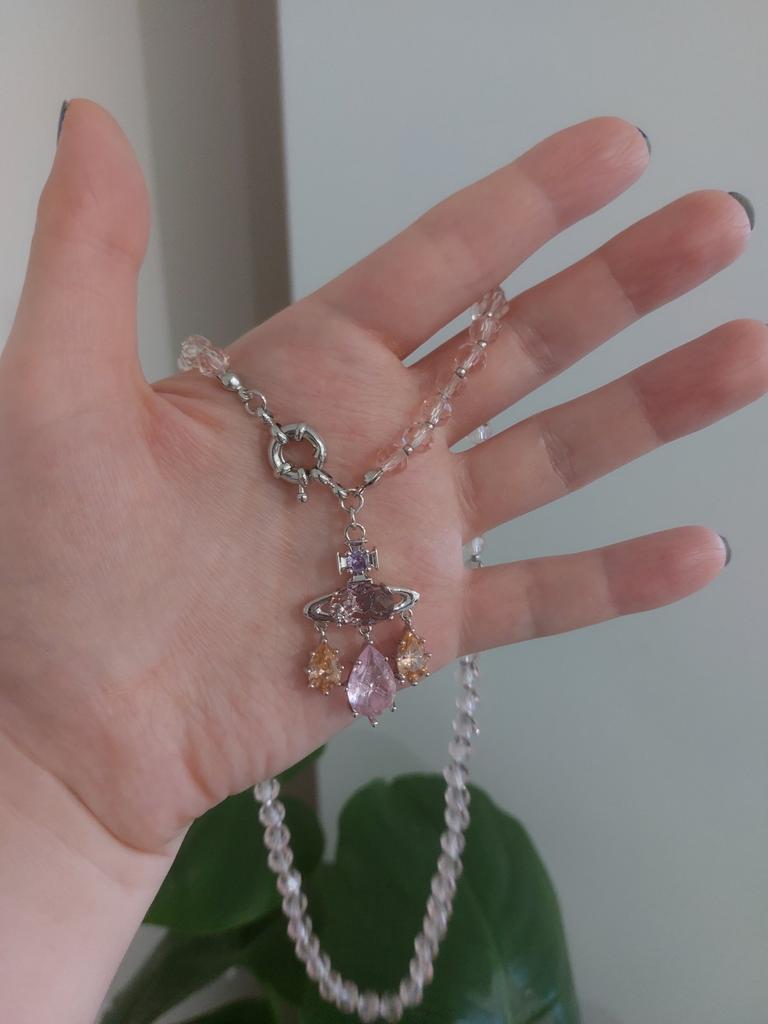 Colar com Pingente de Filtro dos Sonhos Sereia da Imperatriz Viúva e Conjunto de Brincos de Zircônia Dopamina
