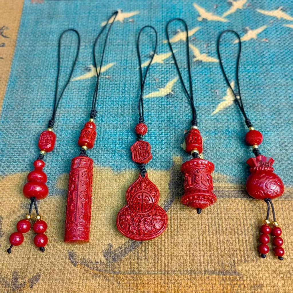 Chinese Purple Gold Sand Fu Mobile Phone Charm - Cinnabar Gourd Ruyi Pendant Key Ornament