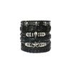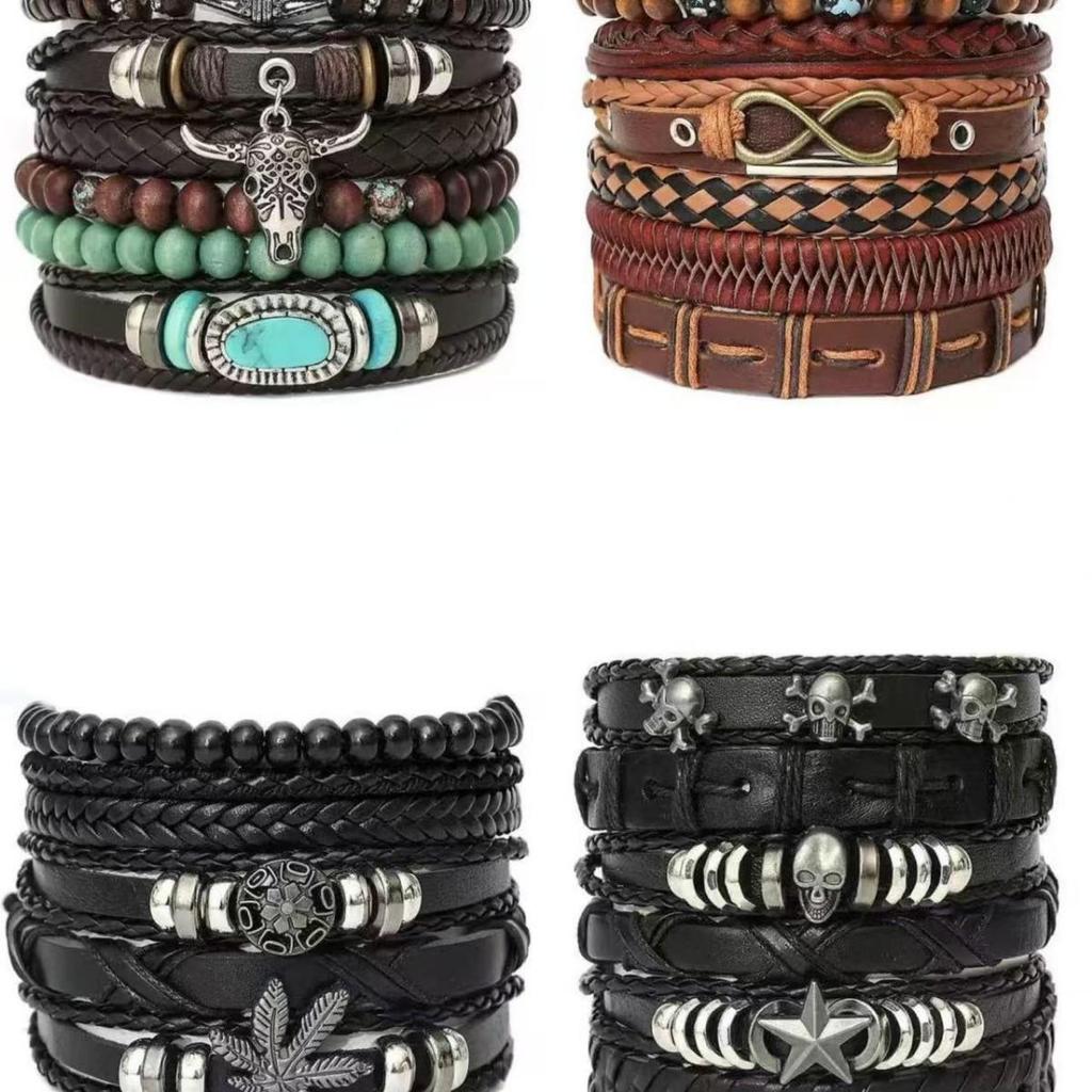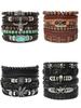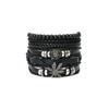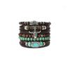 Retro Handmade Men's Woven Leather Bracelet with Bull Head & Feather Decor.