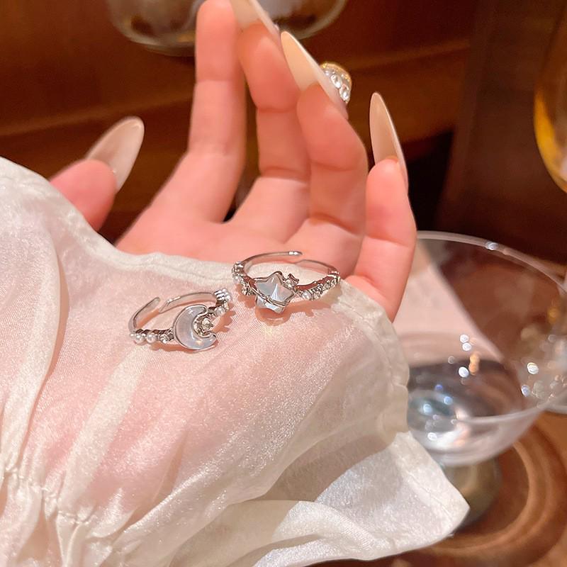 2025 Glacier Blue Star Moon Adjustable Niche Design Ring for Women
