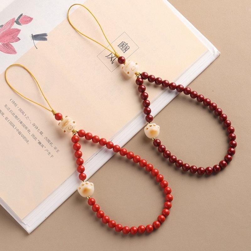 Natural Cinnabar Cat Paw Pendant: Red Sand Bodhi Lanyard - Cute, Fresh, and Stylish Chinese-Style Gift for Girls