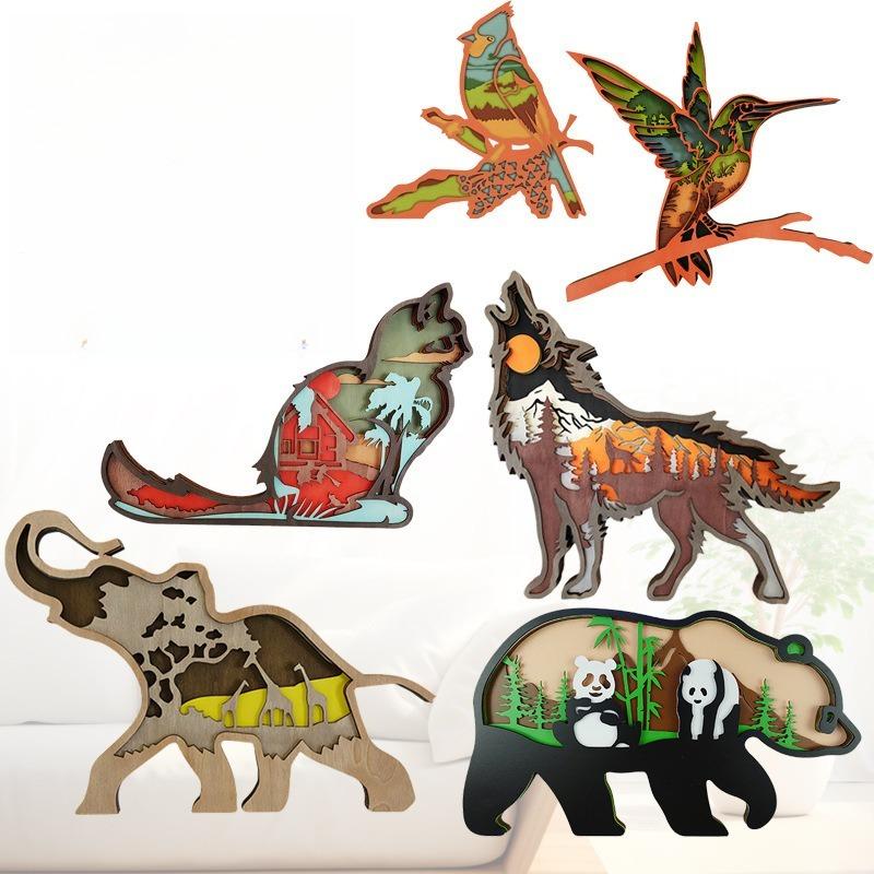 Christmas wooden handicrafts creative North American forest animal living room decoration elk brown bear ornaments