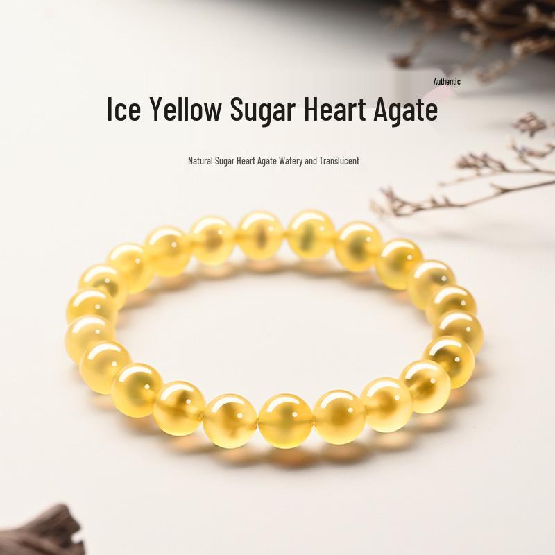 Pulseira de Ágata Coração de Açúcar Amarelo para Mulheres – Elegante Presente de Alto Valor