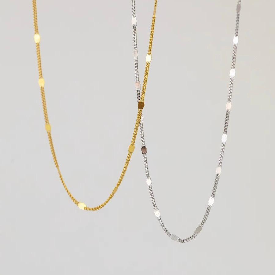 Sparkling 18K Gold Plated Sterling Silver Sequin Necklace with French Clavicle Chain Design