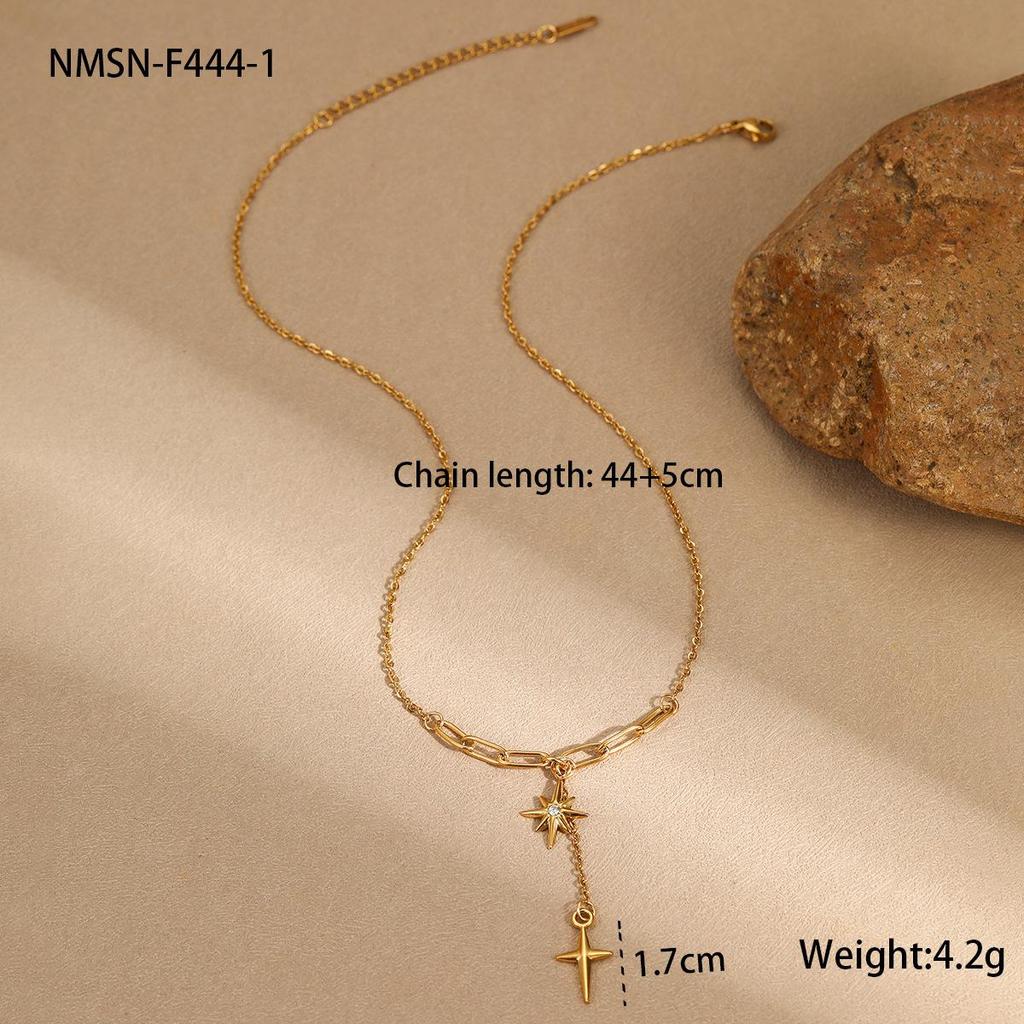 Hot-Selling Eight-Pointed Star Necklace: Gold-Plated Copper Tassel with Diamond-Studded Cross Pendant on Minimalist Clavicle Chain.