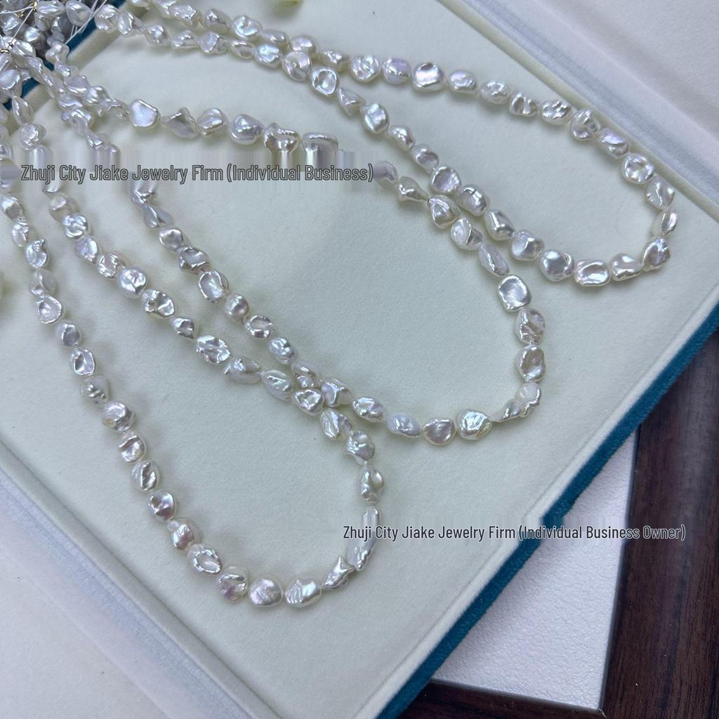 Colar de Pérolas Barrocas com Brilho Azul Prateado: Corrente de Contas Semi-acabada com Pérolas Keshi de Água Doce Naturais 5-9mm