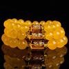 Pulseira de Ágata Amarela Grau 7A - Ano Benming Deus da Riqueza de Três Lados Conta Barril, Joia Deus da Riqueza Cinco Caminhos.
