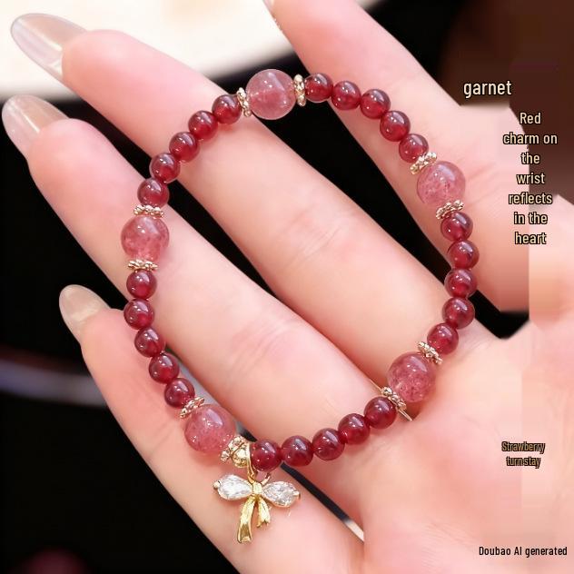 Gold-Plated Natural Garnet Flower Bracelet: Korean Design, Light Luxury, Versatile Crystal Bead