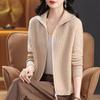 Women's Autumn/Winter 2025 Turn-Down Collar Double Zipper Wool Cardigan Coat - Fashionable Outerwear for Moms