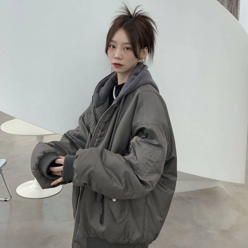 2025 Hooded Cotton Bomber Jacket: Loose Fit, Thickened Warm American Baseball Style