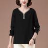 Women's Plus Size V-Neck Long Sleeve Autumn Top - Stylish Loose-Fit Base Shirt for Middle-Aged Mothers