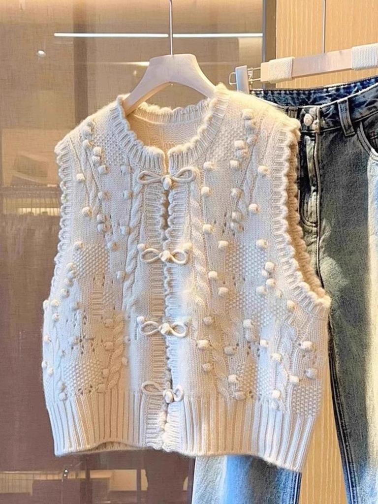Women's Autumn-Winter 2025 Loose Knitted Vest: Sleeveless Chinese-Style Layered Cardigan.